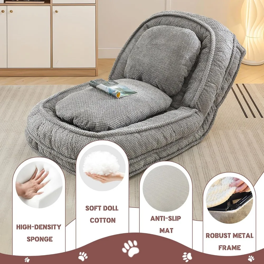 Upholstered Human Dog Bed for Adult & Pets, Convertible Lazy Sofa Bed with 5 Adjustable Position, Comfy Tatami Bean Bag Lounge C